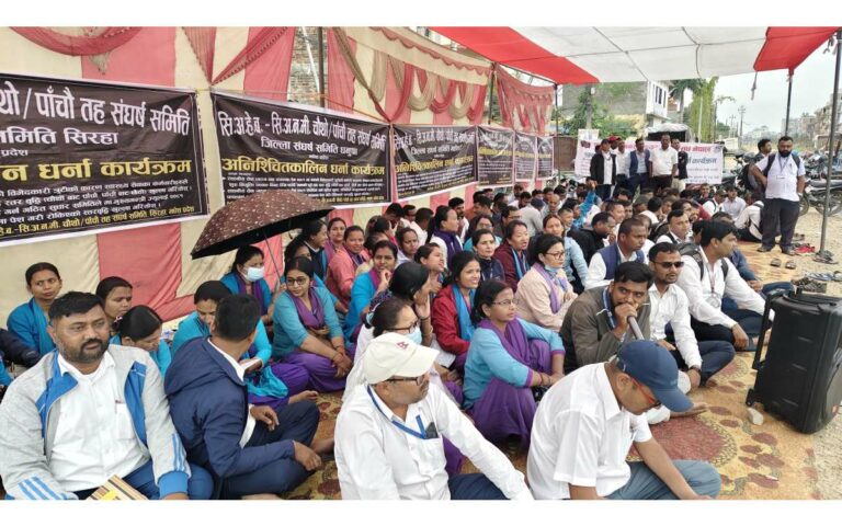 काठमाडौं । मधेस प्रदेशका १ हजार ८ सय बढी स्वास्थ्यकर्मी आन्दोलनमा उत्रिएका छन् । मुख्यमन्त्री कार्यालय अगाडि जारी धर्नामा चौथो र पाँचौँ तहका सिअहेव तथा सिअनमी स्वास्थ्यकर्मी सहभागी छन् ।