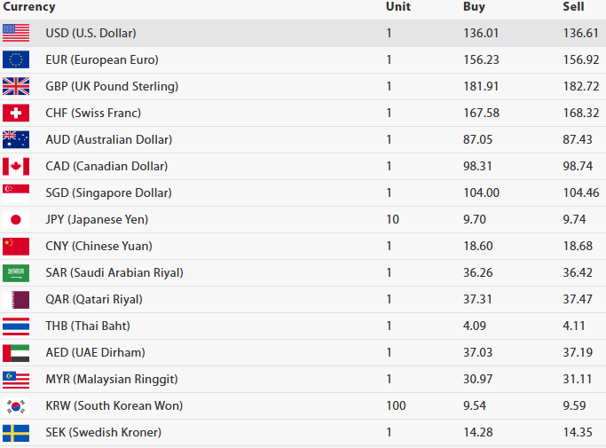 जापानी येन १० को खरिददर नौ रूपैयाँ ७० पैसा र बिक्रीदर नौ रूपैयाँ ७४ पैसा, चिनियाँ युआन एकको खरिददर १८ रूपैयाँ ६० पैसा र बिक्रीदर १८ रूपैयाँ ६८ पैसा, साउदी अरेबियन रियाल एकको खरिददर ३६ रूपैयाँ २६ पैसा र बिक्रीदर ३६ रूपैयाँ ४२ पैसा, कतारी रियाल एकको खरिददर ३७ रूपैयाँ ३१ पैसा र बिक्रीदर ३७ रूपैयाँ ४७ पैसा तोकिएको छ ।