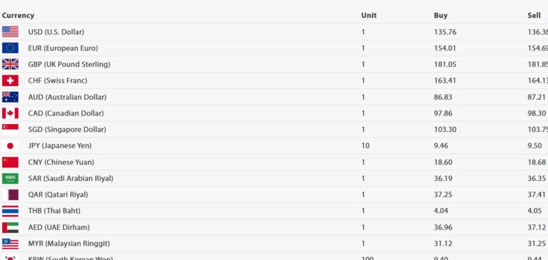 काठमाडौं । नेपाल राष्ट्र बैंकले आजका लागि विदेशी मुद्राको विनिमयदर निर्धारण गरेको छ । निर्धारित विनिमयदरअनुसार अमेरिकी डलर एकको खरिददर १३५ रूपैयाँ ७६ पैसा र बिक्रीदर १३६ रूपैयाँ ३६ पैसा कायम भएको छ ।