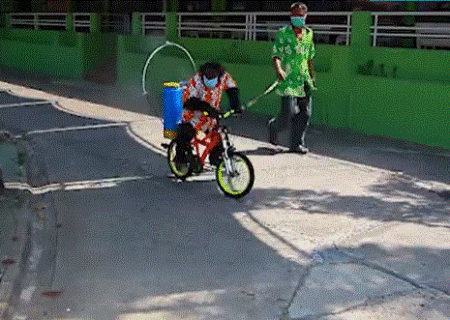 चिम्पान्जीलाई साइकिल चलाउँदै स्यानिटाइजर छर्न लगाएपछि विश्वभर आलोचना