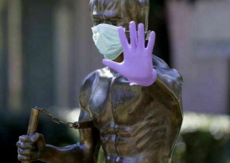 कोरोना महामारी मूर्तिलाई पनि लगाईयो मास्क (हेरौँ तस्वीरमा)