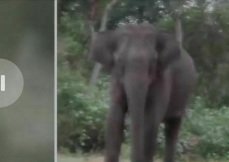 हात्तीमाथि हमला गर्ने तयारीमा बाघ (भिडियो)