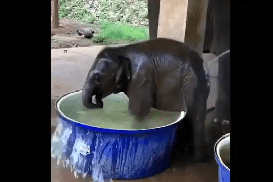 नुहाउनका लागि पानीमा दौडियो हात्तीको बच्चा, भिडियो भाइरल !