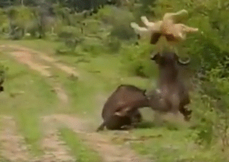 बाघलाई उचाल्दै पछार्दै भैँसी (भिडियोसहित)