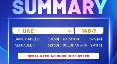 काठमाडौं । त्रिकोणात्मक क्रिकेट सिरिज हङकङविरुद्ध नेपालले शानदार बलिङ गरेको छ । मुलपानी क्रिकेट मैदानमा…