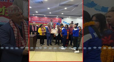 नेकोसद्वारा खेलाडीहरु नगदसहित सम्मानित