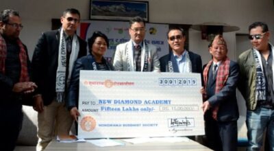 न्यु डाइमण्ड महिला भलिबल कपलाई होङ वान्जी बौद्ध समाजको साथ