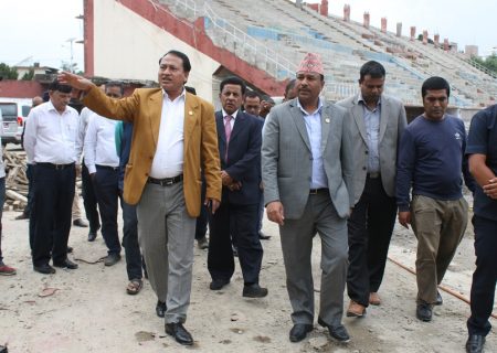 खेलकुद मन्त्रीद्वारा पूर्वाधारको निरीक्षण