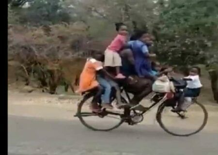 ९ बच्चालाई साइकलमा राखेर हिँडे यी व्यक्ति (भिडियो)