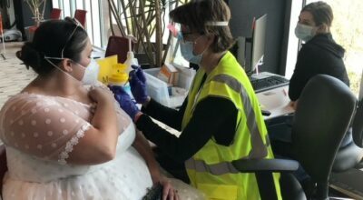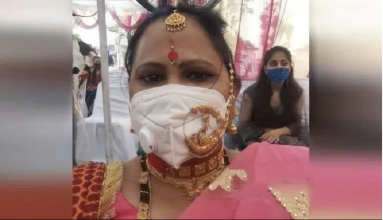 एक युवतीले लगाइन् विवाहको कपडामा नै कोरोनाविरुद्धको खोप