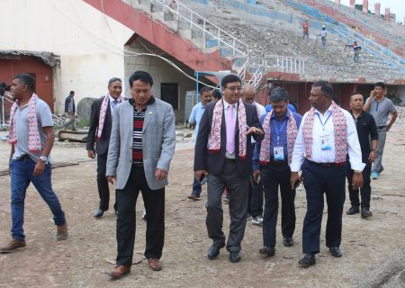 पूनर्निर्माण भइरहेको दशरथ रंगशालाको निरीक्षण