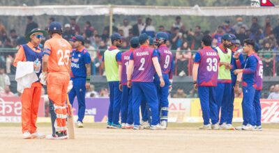 विकेटको वर्षा भएको खेलमा नेपाललाई नेदरल्यान्ड्सले दियो १ सय २१ रनको लक्ष्य