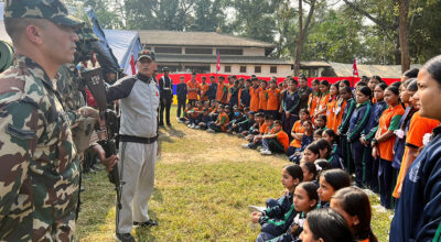 सैन्य सामग्री प्रदर्शनीमा विद्यार्थीको चाख