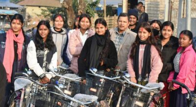 उच्च शिक्षाका लागि आउजाउ गर्न छात्राहरूलाई साइकल