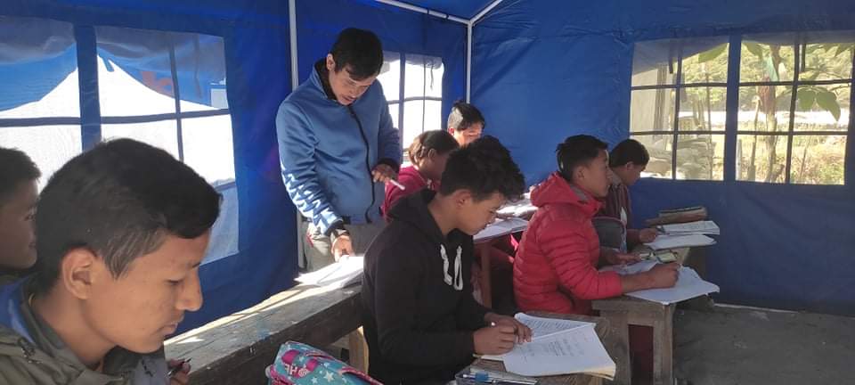 विद्यालय बगाएपछि टेन्टमा पढाइ