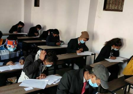 शुरु भयो कक्षा १२ को परीक्षा, सामाजिक दूरी कायम गर्दै परीक्षार्थी