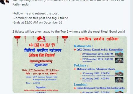 शुक्रवारदेखि कुमारी हलमा चीनियाँ चलचित्र महोत्सव हुँदै