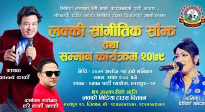 लक्की साँगीतिक साँझमा गायक कार्की र वन्दनालाई सम्मान गरिँदै