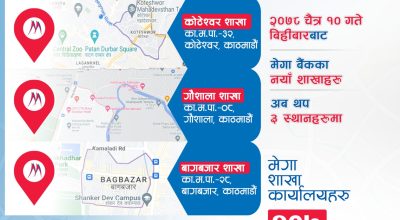काठमाडौंमा मेगा बैंकको तीन नयाँ शाखा थप