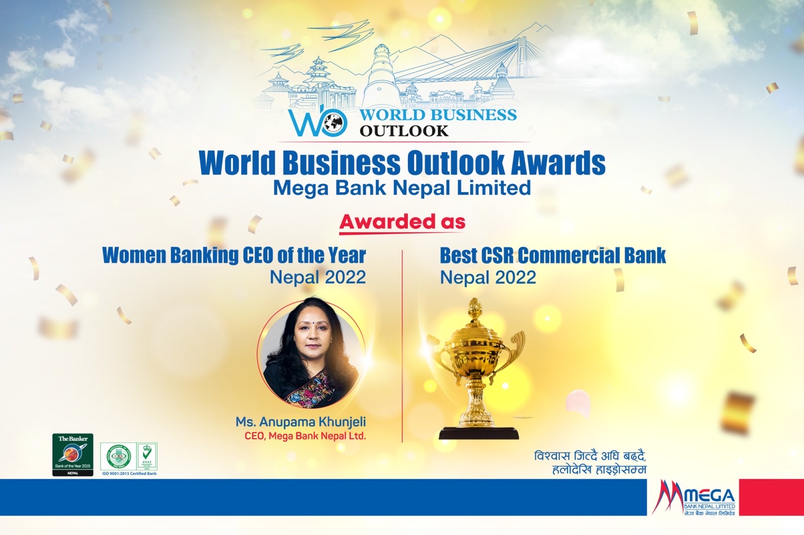 मेगा बैंकले जित्यो एकैसाथ दुई अन्तर्राष्ट्रिय अवार्ड, सीईओ खुञ्जेलीलाई महिलातर्फको उत्कृष्ट अवार्ड