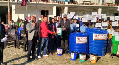 महालक्ष्मी विकास बैंकद्वारा विद्यालयलाई पानी ट्याङ्की र डस्टविन सहयोग