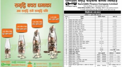 समृद्धि फाइनान्सद्धारा उत्कृष्ट ब्याजदरसहितको बचत योजना सार्वजनिक