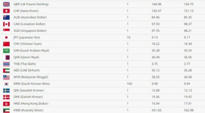 यस्तो छ विदेशी मुद्राको आजको विनिमयदर