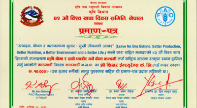 शिखर इन्स्योरेन्सलाई उत्कृष्ट बीमा कम्पनीको पुरस्कार प्रदान