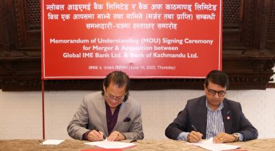 ग्लोबल आइएमई बैंक र बैंक अफ काठमाण्डूबीच मर्जर सम्झौता, मुलुककै ठूलो बैंक बन्ने