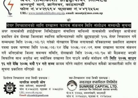 काठमाडाैं : सिनर्जी फार्इनान्सले अाफ्ना शेयरधनीलार्इ अाजदेखि २५% हकप्रद शेयर बिक्री खोलेको छ । अाफ्नो संस्थाको…