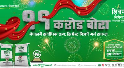 ११ करोड बोरा बिक्री गर्दै शिवम् नेपाल कै सर्वाधिक बिक्री हुने ओपिसि सिमेन्ट बन्न सफल