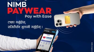 नेपाल इन्भेष्टमेण्ट मेगा बैंकले नेपालमै पहिलो पटक ल्यायो भिसा वेयरेबल स्टिकर