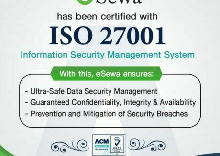 ई-सेवाले पायो आइएसओ २७००१ः २०१३ मान्यता प्राप्त प्रमाणपत्र
