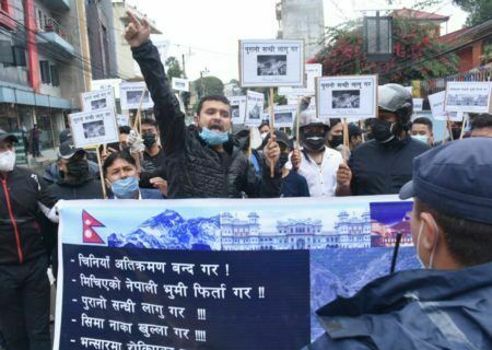 हुम्लामा सीमा अतिक्रमण गरेको भन्दै चिनियाँ दूतावास अगाडि प्रदर्शन