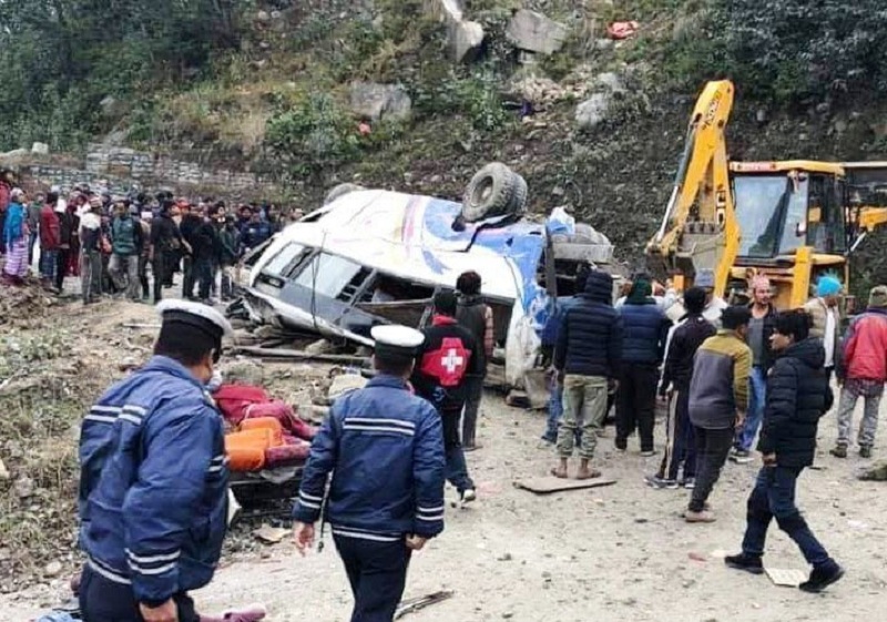 सिन्धुपाल्चोकमा तीर्थयात्री चढेको बस दुर्घटना १३ जनाको मृत्यु