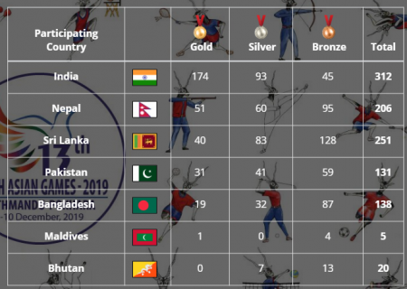 सागमा कुन देशले कति पदक जिते ? भुटान र माल्दिभ्स कमजोर