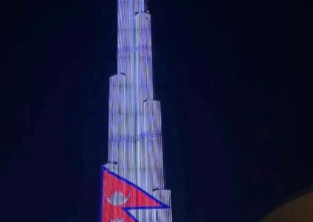 संसारकै अग्लो टावर बुर्ज खलिफामा नेपाली झण्डा फहराइयो
