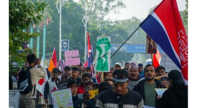 जलवायु परिवर्तनको क्षतिपूर्ति माग गर्दै काठमाडौंमा प्रदर्शन