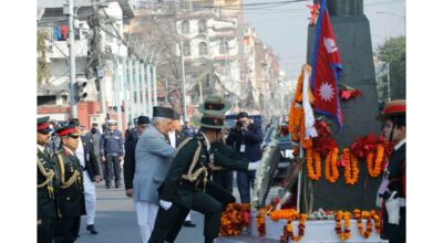 राष्ट्रपति पौडेलद्वारा पृथ्वीनारायण शाहको सालिकमा माल्यार्पण