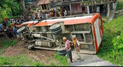 उदयपुरमा मलामी बोकेको बस पल्टियो, २६ जना घाइते