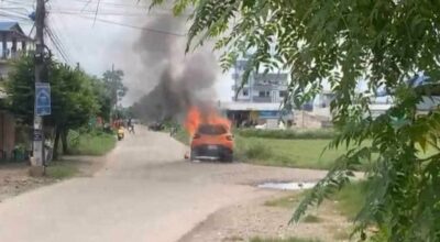 रेलमार्गको सर्भे गर्ने टोली चढेको गाडीमा आगजनी