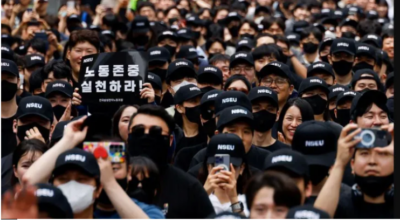सामसुङका हजारौं कर्मचारी आमहडतालमा उत्रिए