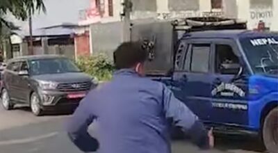 विराटनगरमा महेश बस्नेत सवार गाडीमा रातो मसी प्रहार, दुई युवक पक्राउ