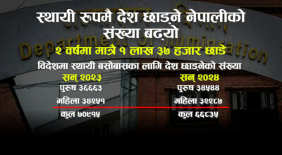स्थायी रूपमै देश छाड्ने नेपालीको संख्या बढ्यो, २ वर्षमा १ लाख ३७ हजारले छाडे देश