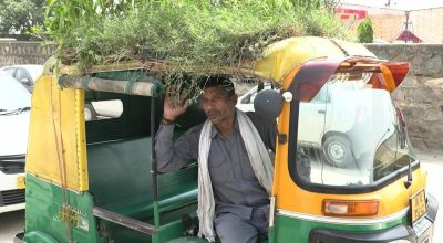 यात्रुहरूलाई चिसो राख्न अटो रिक्साको छतमा बगैंचा