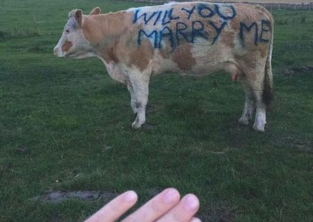 प्रेमिकाको मनपर्ने गाईको शरीरमा बिहे प्रस्ताव लेख्ने प्रेमी