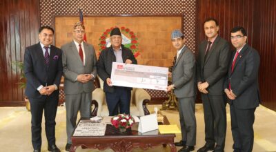 मीनबहादुर गुरुङले हस्तान्तरण गरे १ करोड ११ लाखको चेक