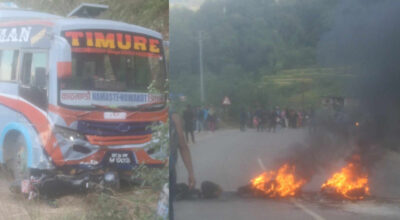 नुवाकोटको महादेवफाँटमा बसले ठक्कर दिँदा एक जनाको मृत्यु, स्थानीले गरे बाटो बन्द