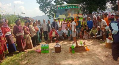 गाउँमा बस पुगेपछि स्थानीयमा खुसीयाली, पूजा गरेर स्वागत