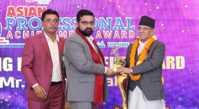 ब्रोकर एशोसिएसनका अध्यक्ष ढकाल एशियन प्रोफेसनल योङ ईन्टरप्रेनियर्स अवार्डबाट सम्मानित